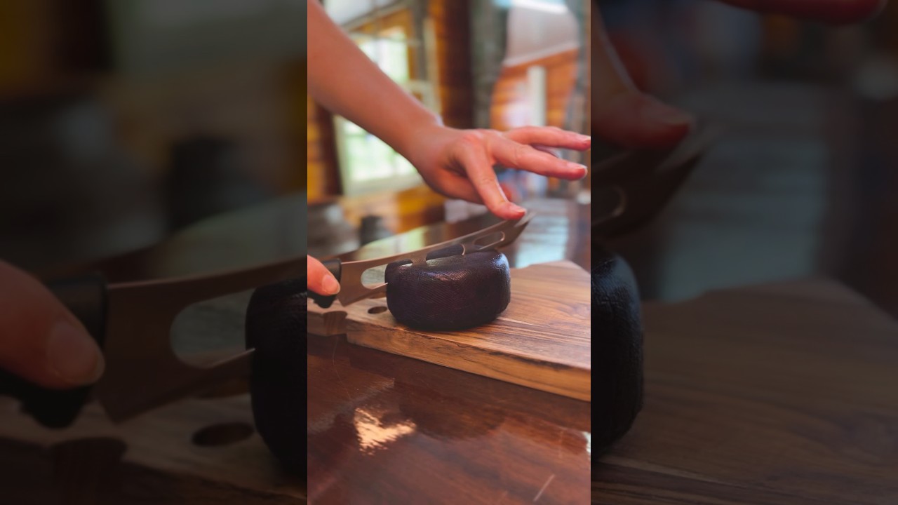 Um queijo maturado, medalhista de ouro, com casca comestível desenvolvida naturalmente com vinho bordô, possui massa macia e cremosa com notas suaves e frutadas.